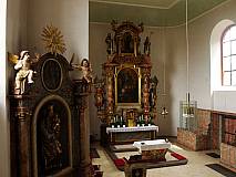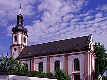Die zweischiffige Kirche ist im Barockstil erbaut. Neben dem Hochaltar verfügt der Innenraum über zwei Seitenaltäre. Die Orgel wurde im Jahre 1836 vom Orgelbauer Adam Joseph Oestreich aus Oberbimbach gebaut.