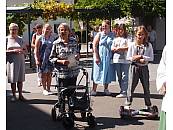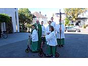 Zu einer kurzen Andacht und den Segensgebeten versammelten sich die Gläubigen mit Dechant Andreas Weber, um dann den Segen mit Weihwasser am eigenen Fahrzeug zu empfangen. „Mit Gottes Schutz sind wir gut behütet in den Ferienwochen unterwegs. Wir alle sind - auch als Fußgänger - Teilnehmer im Straßenverkehr und vielen Gefahren ausgesetzt. Rücksicht und Einhaltung der Regeln bleiben auch mit dem Segen immer wichtig! Gottes Segen ist immer dabei, ob daheim oder in der Ferne!“, so Dechant Andreas Weber schmunzelnd beim Austeilen des Weihwassers. „Bei der großen Hitze ist das Weihwasser wirklich auch eine kleine willkommene Erfrischung!“, so einer, der sein Fahrrad segnen ließ.