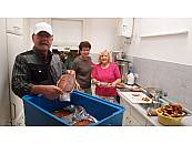 Nach einer frohen Wortgottes-Feier mit Gemeindereferentin Brigitte Tabor in der Heilig-Geist-Kirche ging’s im Pfarrsaal deftig zu: Mit Brezeln, hausgemachtem Leberkäs‘ aus dem Hause Preis, kühlen Getränken, manch lustiger Geschichte. Der Vorsitzende des Steinheimer Kneipp-Vereins Karl-Heinz Stenger gab Erläuterungen zur natürlichen Gesundheit nach den Lehren von Pfarrer Kneipp, die von einigen Teilnehmern auch gleich ganz praktisch eingeübt und vorgeführt wurden.