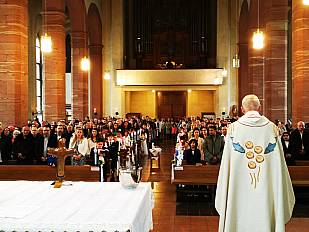 Mit Applaus bedankte sich die Gottesdienstgemeinde auch bei den betreuenden Jugendlichen, die die gemeinsamen Tage in Miltenberg begleiteten, bei der Schola und dem Kantor Dr. Krystian Skoczwoski .