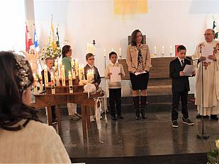 Durch Gebete und Gesänge wirkten sie in dem f estlichen Gottesdienst mit, erneuerten ihr Taufbekenntnis und empfingen zum ersten Mal die Heilige Kommunion – ein zentrales Sakrament der Katholischen Kirche: der Leib Christi in der Gestalt des Brotes (Hostie).